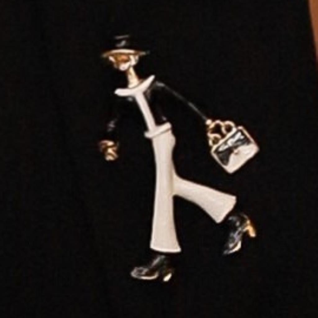 BROCHE MULHER PRETO E BRANCO